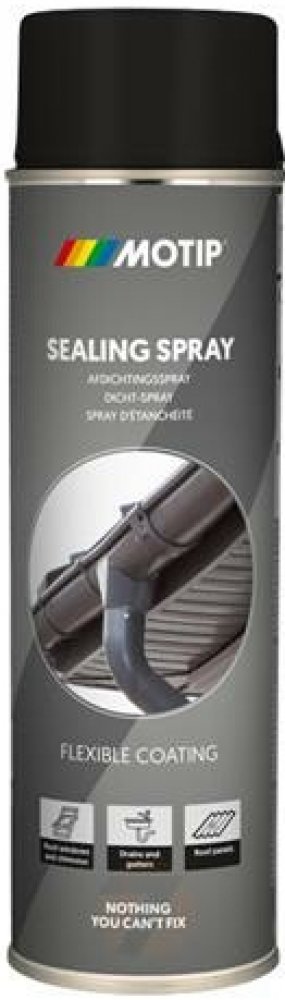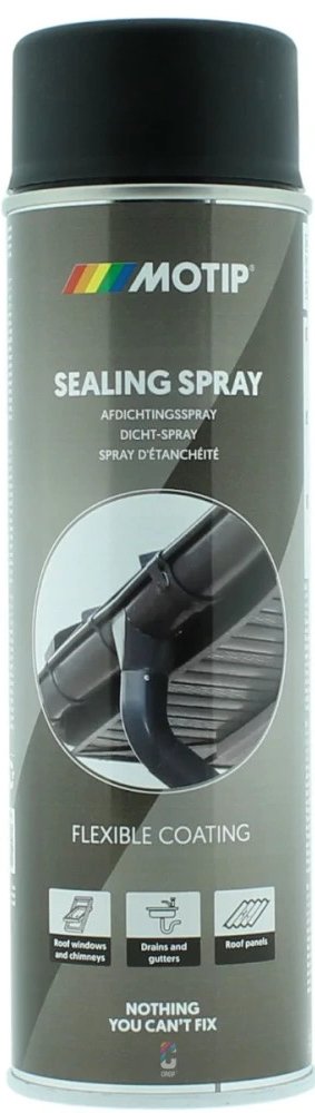 MOTIP těsnící sprej je vhodný k použití v interiéru i exteriéru. Použitelný je na různé podklady jako je kov, plast, PVC, beton nebo vinyl. Ideální k utěsnění např. malých netěsností a prasklin na okapových žlabech, ventilacích, odpadech, střechách atd. MOTIP sealing spray je voděodolný, flexibilní, snadno použitelný, přelakovatelný nástřik, který si zachovává pružnost i při změnách teplot, nesmrš...