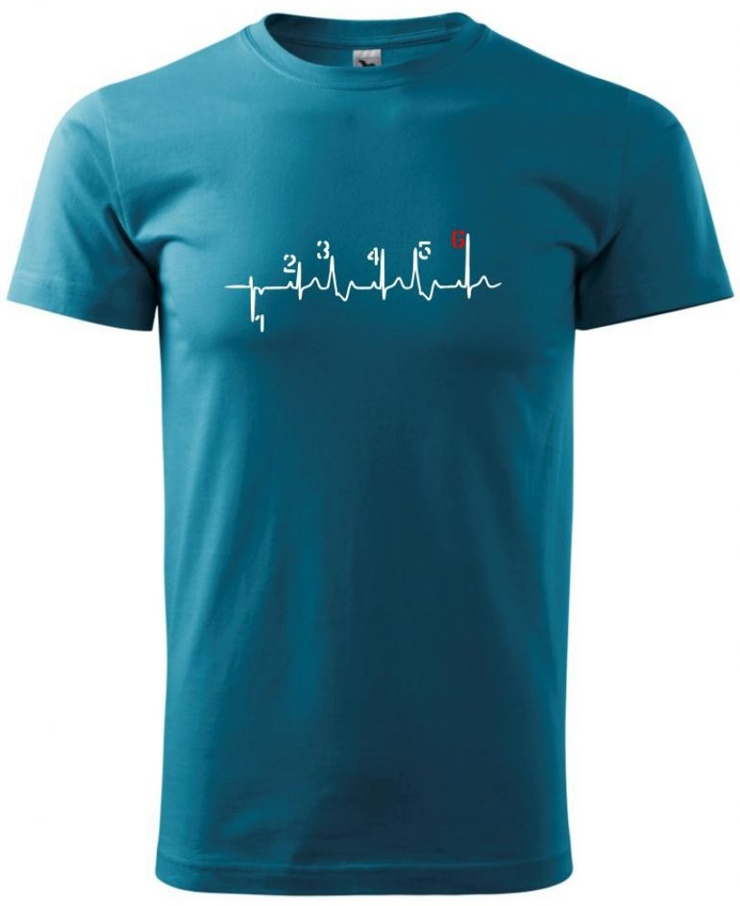 Moto EKG řazení klasické pánské triko tmavý tyrkys