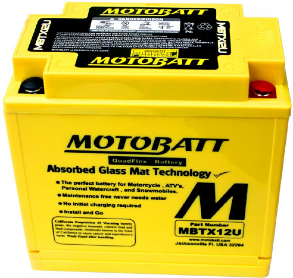 Prémiové motocyklové baterie MOTOBATT s technologií AGM v konstrukčním řešení QuadFlex, které poskytuje velkou variabilitu pro montáž baterie.