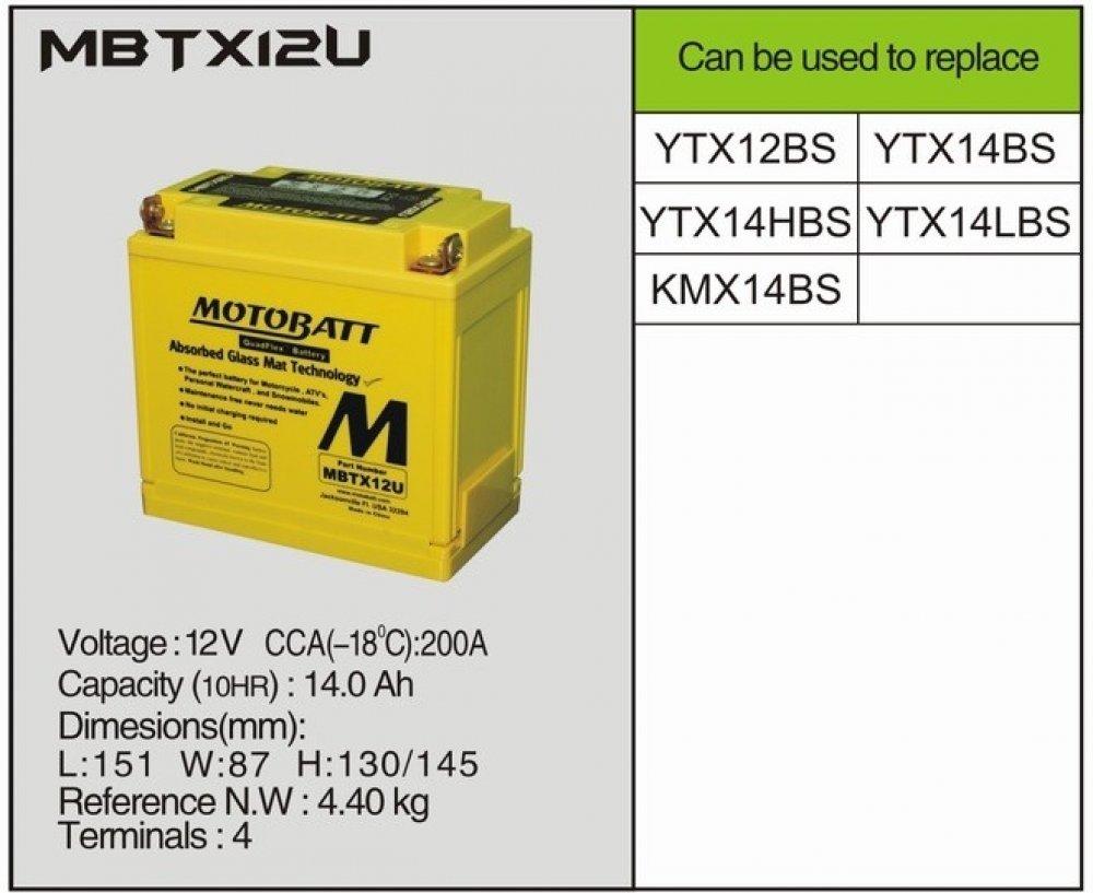 Motobatt 14 Ah 12 V 200 A 151 mm 87 mm 130 mm 4.4 kg