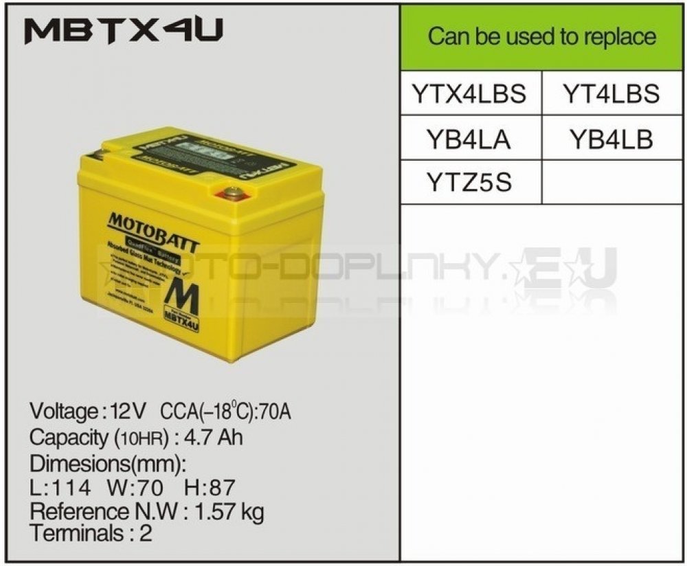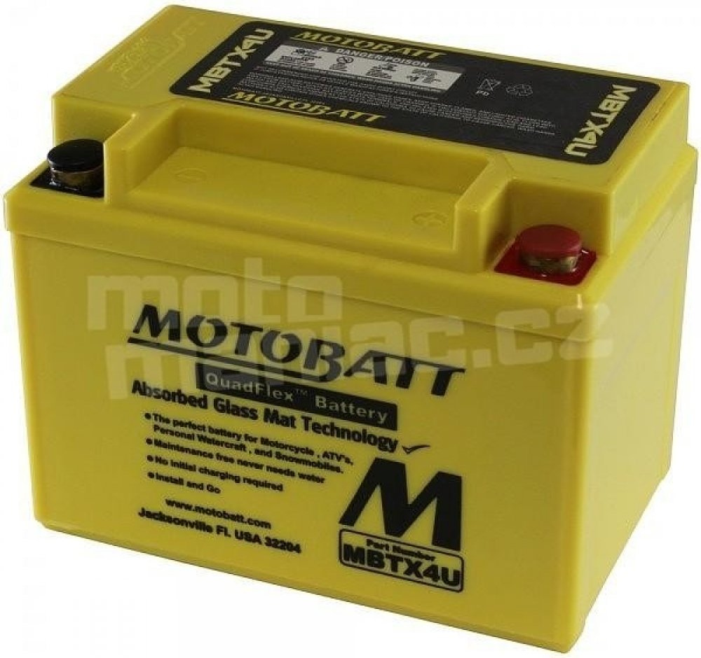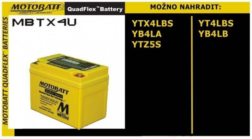 Motobaterie Motobatt MBTX4U 4,7 Ah je náhrada baterií YTX4L-BS,