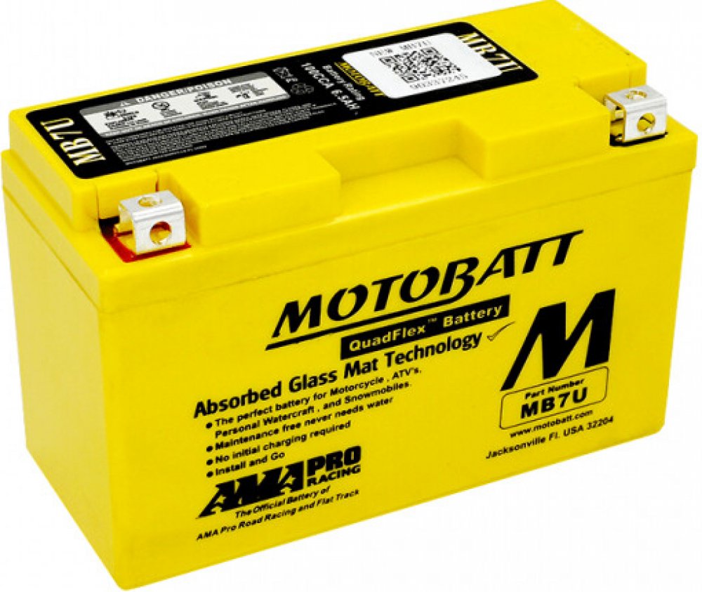 Motobatt 4.7 Ah 12 V 70 A (+) pól vpravo AGM (VRLA) se šroubovou svorkou pro terén a powersports 114 mm 70 mm 87 mm 1.57 kg uzavřená s dobrou skladovatelností s nízkou údržbou nabité a připravené k použití pro libovolnou orientaci