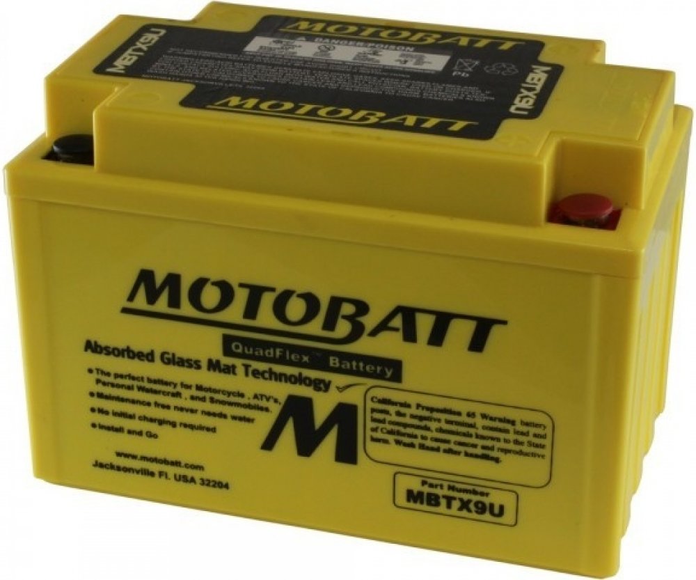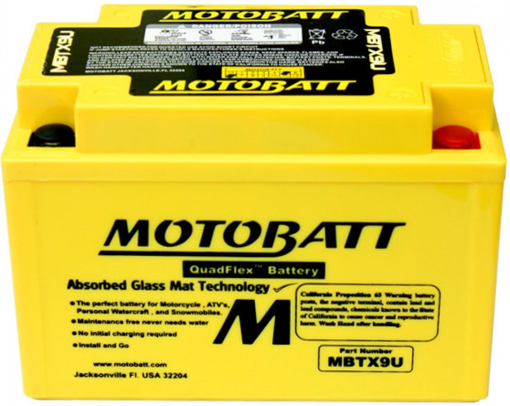 Prémiové motocyklové baterie MOTOBATT s technologií AGM v konstrukčním řešení QuadFlex, které poskytuje velkou variabilitu pro montáž baterie.