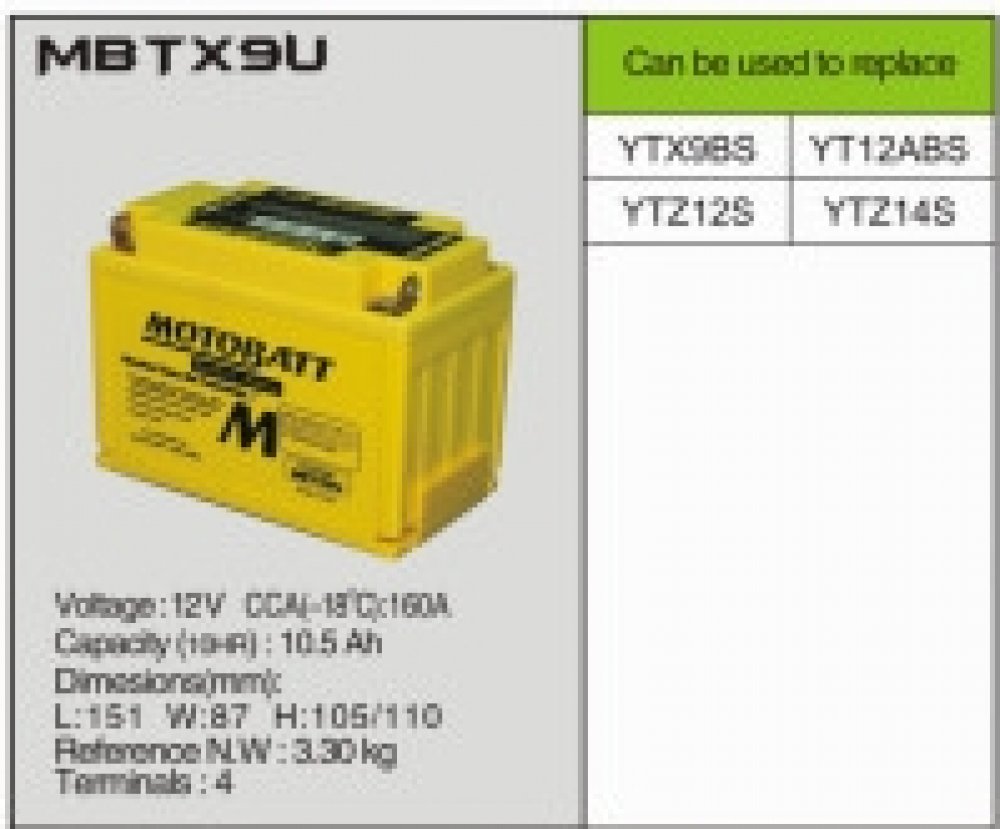 Motobatt 10.5 Ah 12 V 160 A 151 mm 87 mm 105 mm 3.3 kg