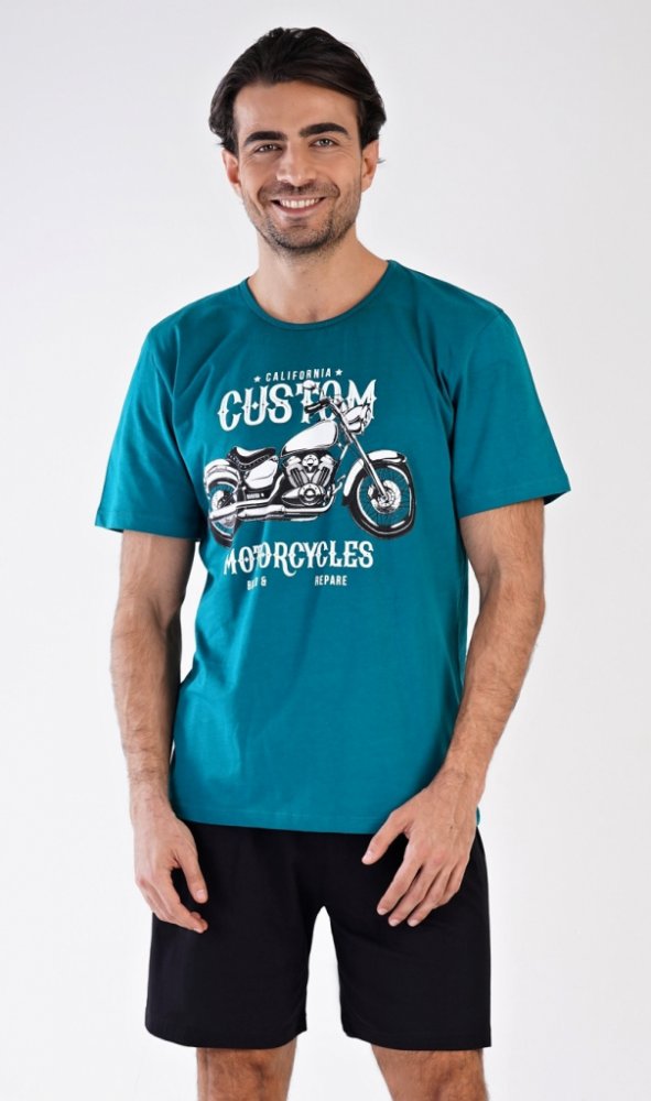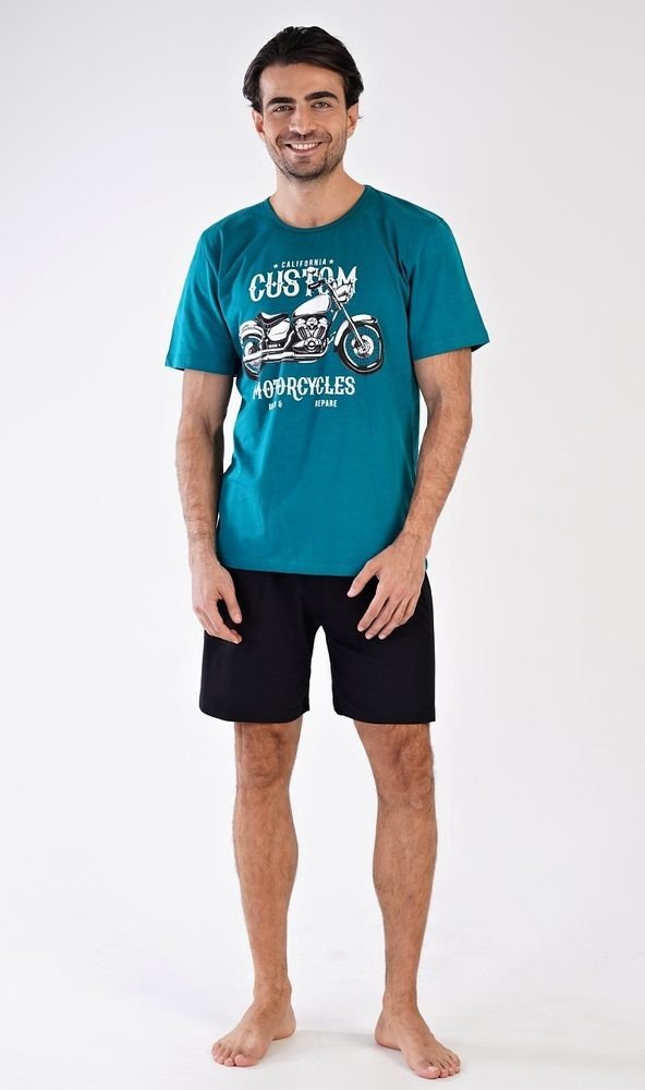 Motocykl pánské pyžamo krátké petrolejové