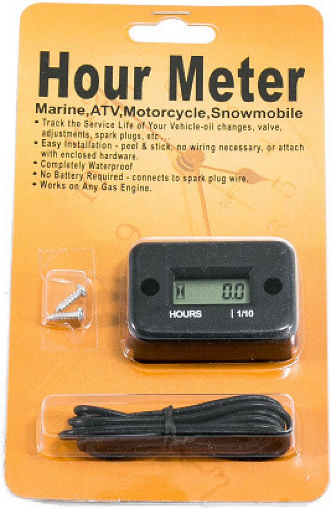 Univerzální počítadlo – měřič motohodin pro 2- a čtyřtaktní motory – MTH05 Měřič je určen k počítání motohodin (MTH) na všech benzinových motorech. Tento údaj slouží ke sledování např. intervalu výměny oleje, nutnosti seřízení ventilů, výměny filtrů, svíček atd. Měřič motohodin je vhodný obzvláště pro stroje bez tachometru. Instalace: Použití je velmi jednoduché, stačí omotat kabel měřiče okolo kabelu k zapalovací svíčce tak, aby se nedotýkal kostry. Tento kabel se pak protáhne ze spodní strany, , běžně skladem