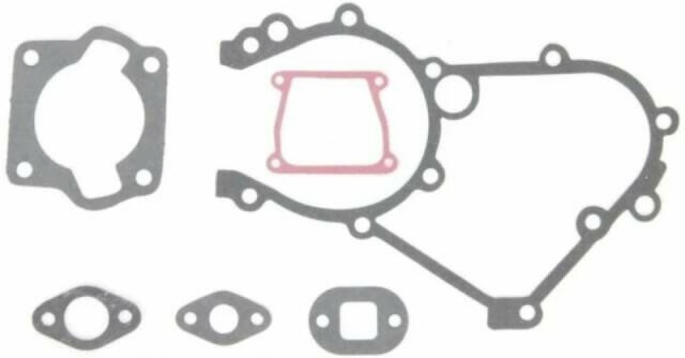 Sada obsahuje: 1x těsnění mezi kartery 1x těsnění pod válec 1x těsnění plovákové komory 1x těsnění pod výfuk 1x těsnění kolena karburátoru na válec 1x těsnění kolena karburátoru