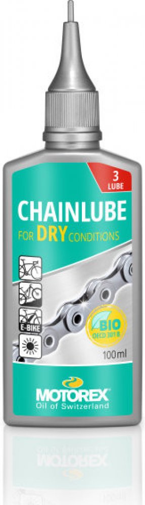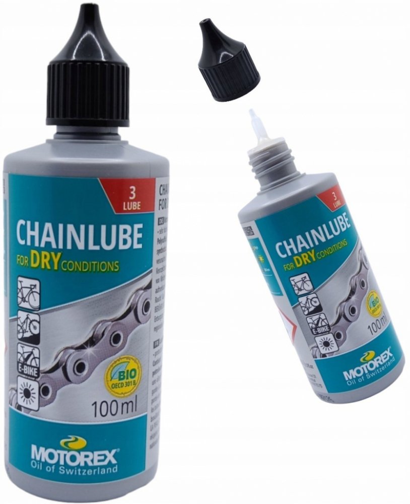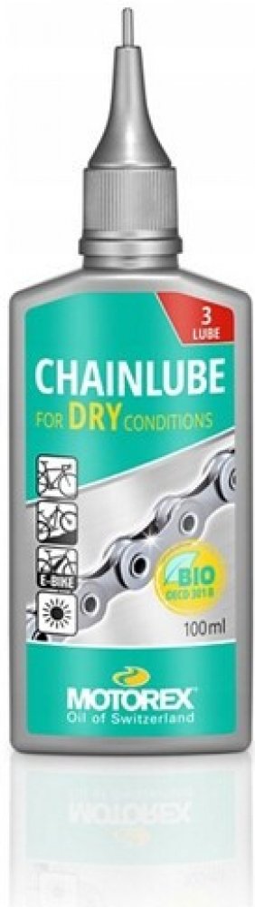 Před aplikací řetěz a přehazovačku důkladně očistěte (např. pomocí odmašťovače MOTOREX CHAIN DEGREASER).