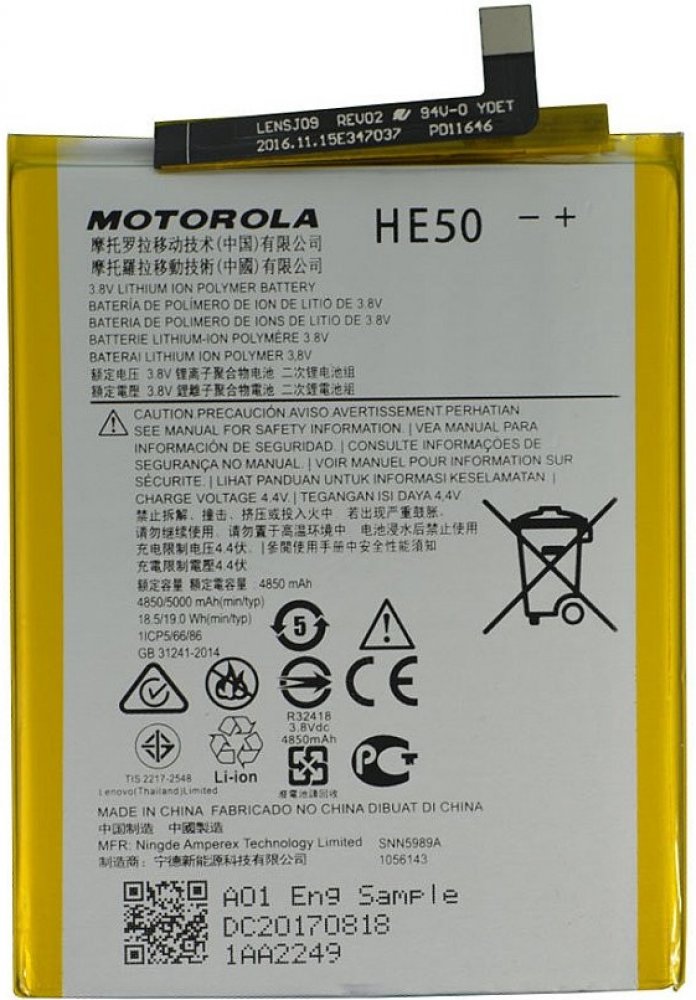 HE50 Motorola Baterie 5000mAh Li-Ion (Bulk) Motorola E4 Plus BALENÍ BULK Jedná se o originální zboží zabalené do igelitového sáčku, který je opatřen pouze modelovým označením produktu. Výhodou tohoto ekologického druhu balení je nižší cena a šetrnost k životnímu prostředí díky redukci přebytečného obalu.