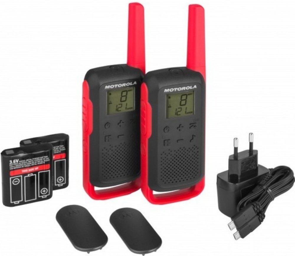 Stylové, odolné a plně vybavené vysílačky T62 jsou ideální pro to jak zůstat ve spojení s přáteli při outdoorových aktivitách. Doma, v kempu, při slavnostech nebo na výletech vám usnadní komunikaci s přáteli Motorola TLKR T62. Jsou vhodné pro použití nejen na výletě ale i třeba doma pro hlídání dětí. TLKR T62 jsou vybaveny radou funkcí a dobíjecími akumulátory. Umožňují komunikovat ve volném prost...