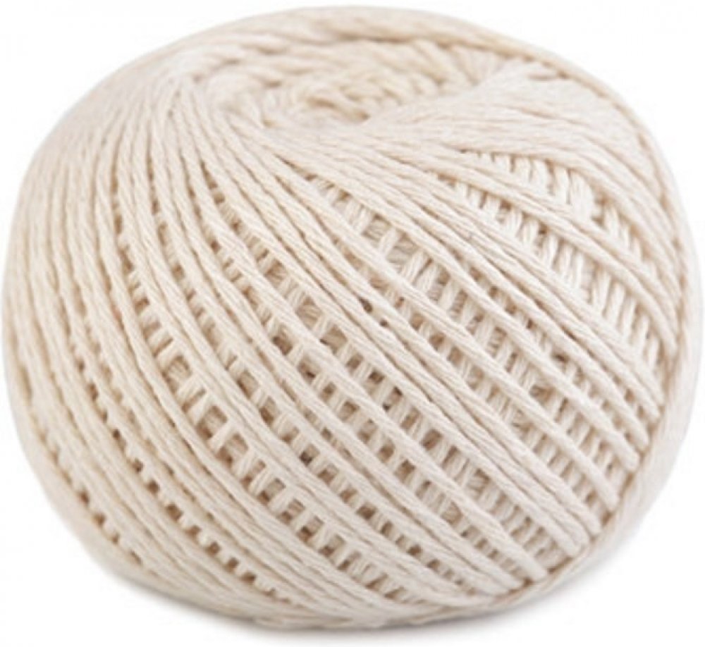 Lněný bílý provázek - motouz vhodný do potravinářské výroby (při výrobě uzenin, salámů, špekáčku..) Provázek má atest o zdravotní nezávadnosti. Délka 63 m. Cena za ks.