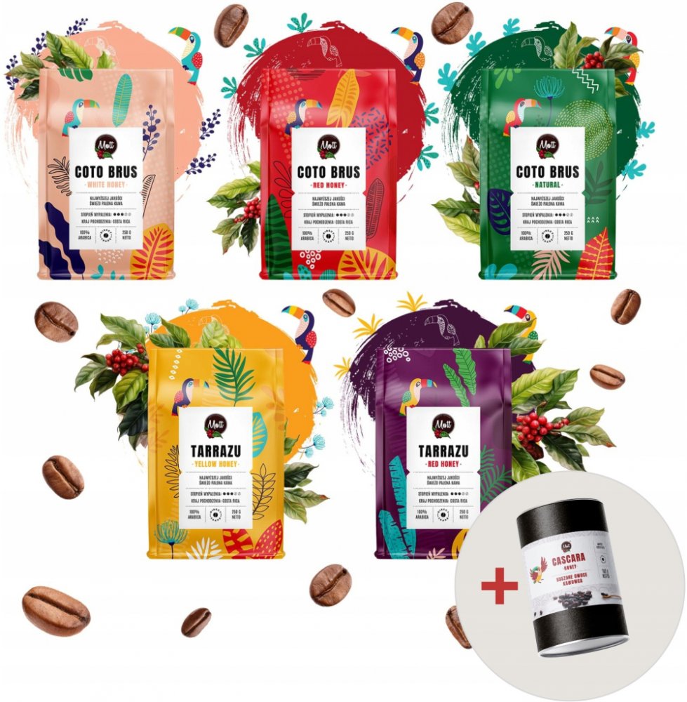 ☕ Sada zrnkových káv Specialty 5x250 g – Kostarika 100% Arabika + Dárek Cascara 100 g