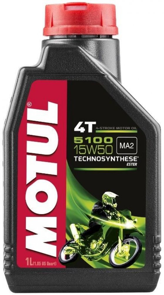 Motul 5100 Ester 4T 15W 50 1L, olej pro 4T motocykly. Technosynthese ® mazivo na bázi esterů. Záručené protioděrové vlastnosti a zlepšení ochrany převodovky i její životnosti. Specifický stupeň viskozity kompenzuje ředění oleje palivem, snižuje spotřebu oleje a umožňuje hladké řazení.