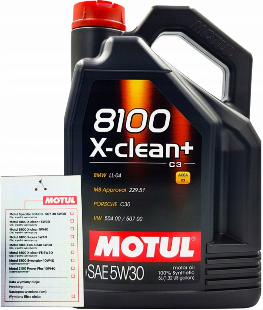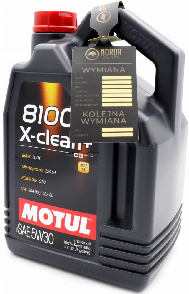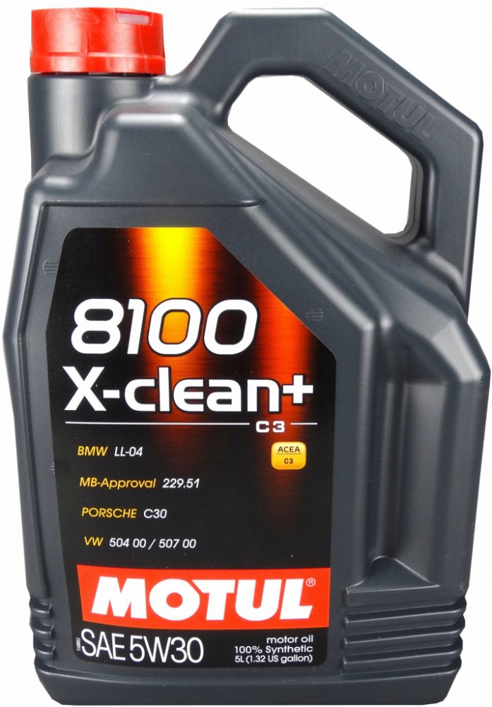 MOTUL 8100 X-clean + 5W-30 plně odpovídá na všechny různé požadavky, které společnosti BMW, MERCEDES, PORSCHE a VW vyvinuly pro své standardy mazání prostřednictvím motorových olejů s vysokým obsahem HTHS (> 3,5 mPa.s), sníženým obsahem síranového popela, fosforu a síry. (Mid SAPS), vhodné pro použití s moderními systémy následné úpravy výfukových plynů.