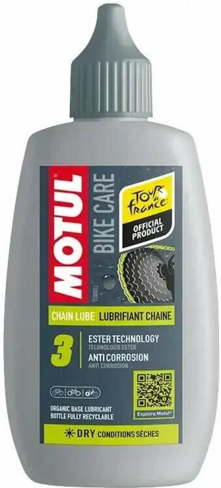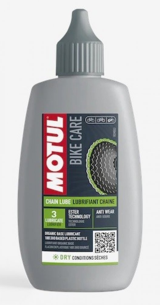Vysoká účinnost MOTUL Bicycle Care znamená dokonalé mazání, důkladné čištění a silnou ochranu. Vhodné pro běžná kola i elektrokola s důrazem na biologicky odbouratelné složení a udržitelné obaly. Nabízí nejvyšší standard péče o vaše kolo. Skvělé pro vaše kolo, dobré pro vaše svědomí. MOTUL Chain Lube Dry usnadňuje důkladné mazání všech typů řetězů jízdních kol. Pomocí nejmodernější technologie MOTUL Ester přináší MOTUL Chain Lube Dry nejvyšší standardy mazání řetězů jízdních kol používaných v suchých podmínkách a zároveň je plně biologicky odbouratelný. MOTUL Ester Core Technology poskytuje vysoce polární molekuly s extrémně vysokou přilnavostí k řetězu, odolností proti otěru a maximální odolností vůči tlaku. Maziva s touto technologií zdaleka převyšují výkonnost jiných známých maziv na řetězy s obsahem pevných látek (např. s PTFE). Produkty obsahují BN (Nitrid Boritý). Jedná se o extrémně tvrdou sloučeninu, která je známá z jiných maziv jako keramika nebo ceramic coating. Vhodné pro běžná i elektrická jízdní kola.