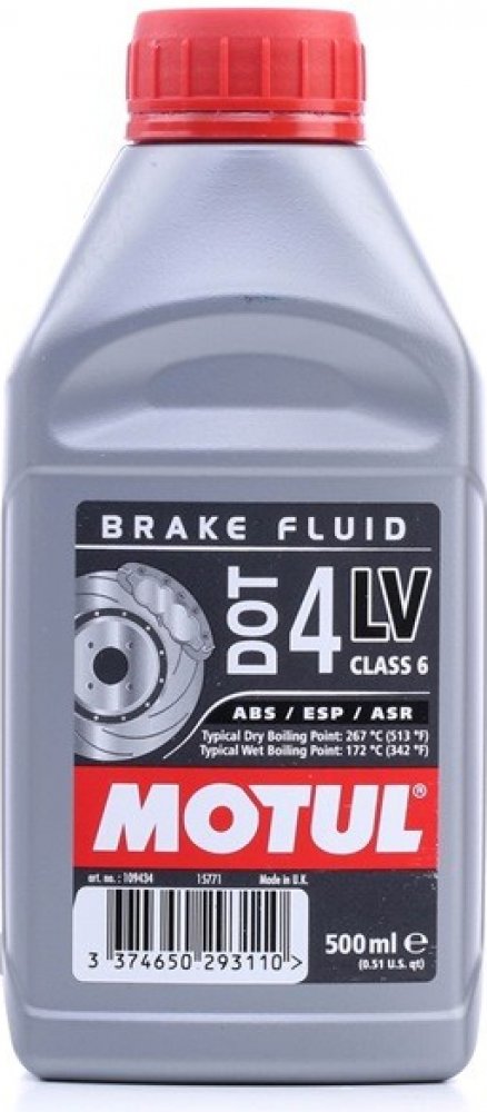 MOTUL DOT 4 LV (nízká viskozita) se doporučuje zejména pro použití v hydraulických brzdových a spojkových systémech vybavených ABS, ESP nebo ASR. Motul Dot 4 LV má vysoký bod varu a vynikající výkon při nízkých teplotách.