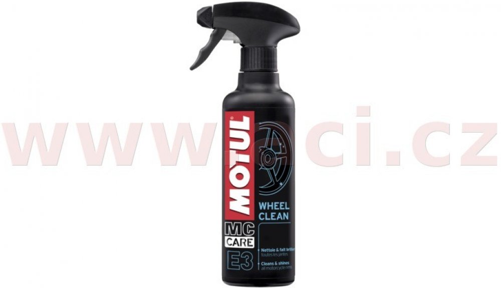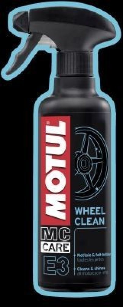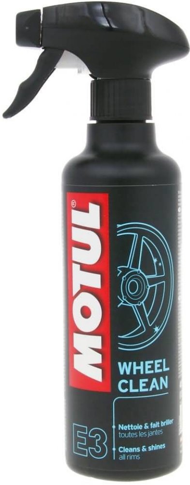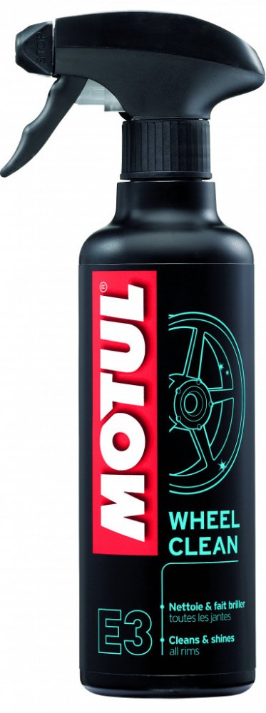 Čistič na ráfky Motul E3 Wheel clean se speciální koncentrovanou recepturou pro snadné a vysoce účinné rozpouštění zbytků mastnoty, oleje a brzdného prachu na ráfcích. Současně s čištěním je šetrný k barvě i laku, které neničí. S tímto čističem bude čištění ráfků kol snadné, rychlé a pohodlné. Lze použít u motocyklů, skútrů, cyklistických i dalších ráfků. Vytváří vysoký lesk. Snadné použití díky balení s rozprašovačem. Dopřejte své motorce kompletní čistící péči, kterou si zaslouží.