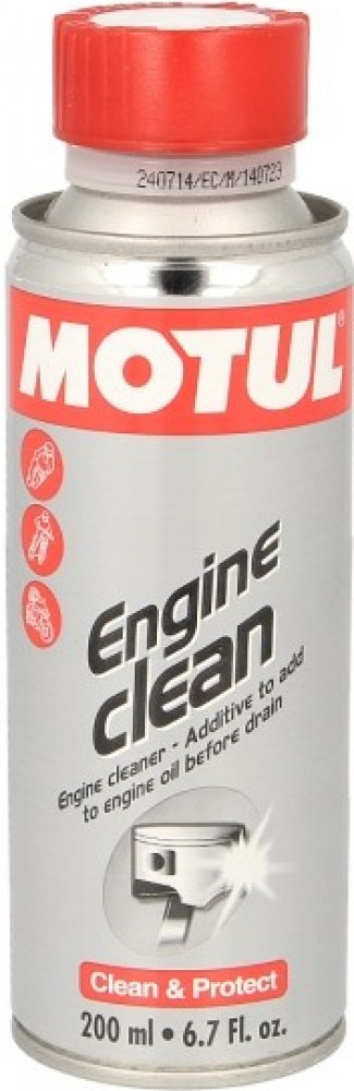 Před výměnou oleje se zahřátým olejem aplikujte dávku (300 ml) Engine Clean do motorového oleje. Nechte motor běžet na volnoběh po dobu cca 15 minut bez pohybu vozidla. Proveďte výměnu oleje a olejového filtru. Opakujte při každé druhé výměně oleje. Použijte MOTUL Fuel System Clean pro perfektní vyčištění palivového systému..