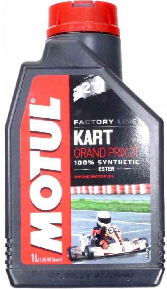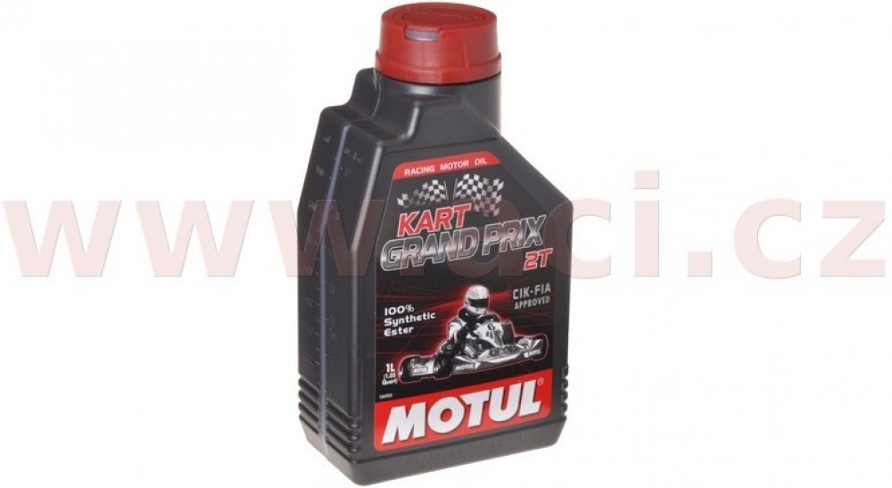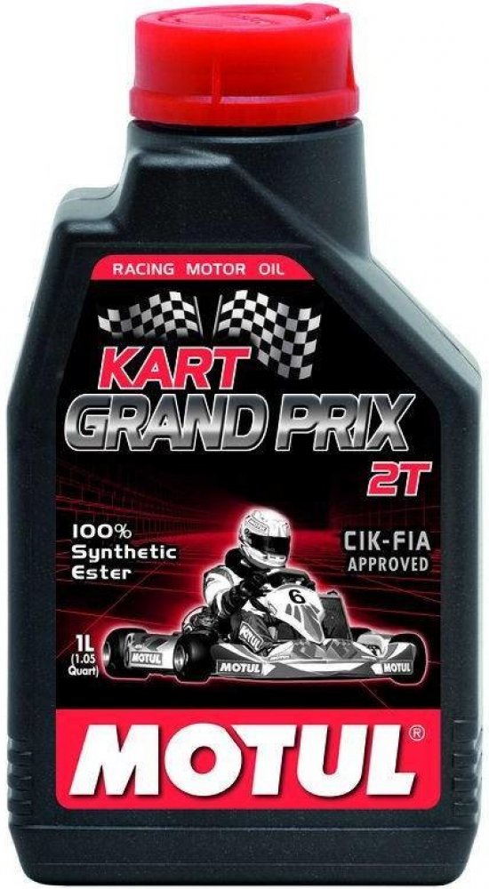 - Motul KART Racing Grand Prix. Plně syntetický olej vyrobený esterovou syntézou pro soutěže motokár, označované „KARTING 20 000 otáček/min„, určený pro mazání směsí paliva a oleje.Vlastnosti:Vyroben na bázi rostlinných, biologicky odbouratelných surovin. Doporučený většinou firem produkující výkonné motory pro motokáry.Výtečné mazací vlastnosti ve velmi vysokých otáčkách motoru s přihlédnutím mazání jazýčkových ventilů. Nepřestřižitelný olejový film zvyšuje jak výkon motoru , tak i jeho životnost. Účinně redukuje tvorbu úsad a zabraňuje zanášení výfukových kanálů. Při přípravě směsi dodržujte poměr doporučený výrobcem motoru.Specifikace:API TC-TSC 3 Kvalitní a levné moto maziva značky Motul.