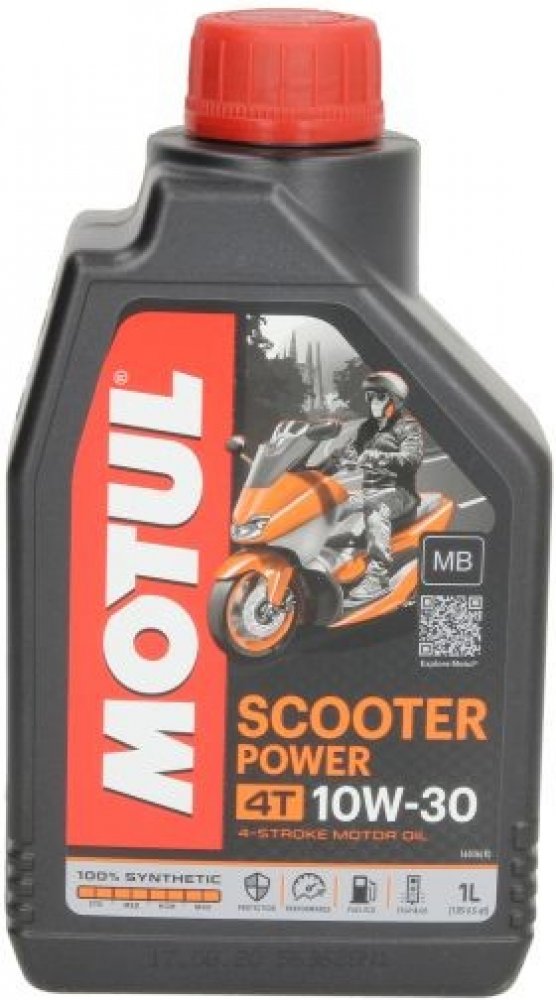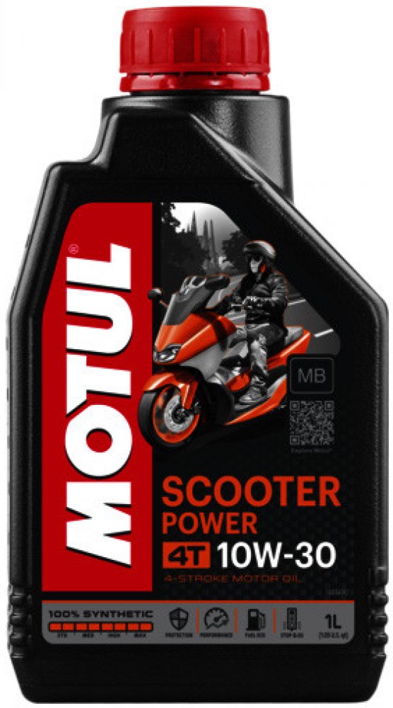 Motul Scooter Power MB 4T 10W-30 je 100% syntetické mazivo speciálně navržené tak, aby splňovalo dnešní specifikace čtyřtaktních skútrů, kde je vyžadována viskozita 10W30 a specifikace JASO-MB.