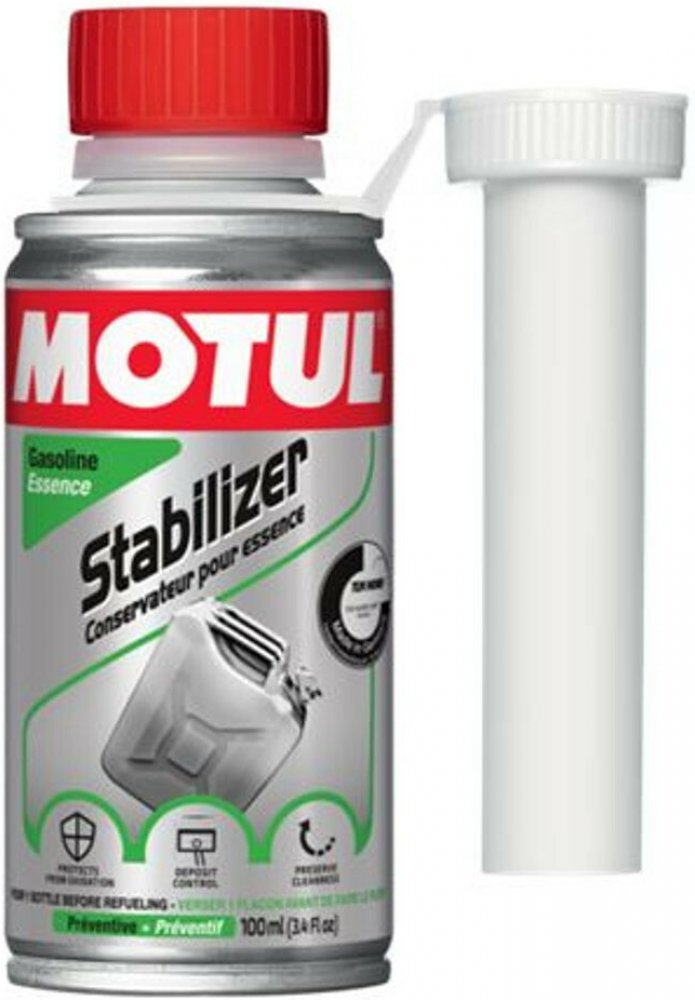 MOTUL STABILIZER je přísada prodlužující trvanlivost benzinu, která se přidává přímo do benzinu. Stabilizuje benzin a jeho unikátní víceúčelové složení: chrání benzín před oxidací, čímž zabraňuje usazování laků a pryskyřic uvnitř karburátoru a usnadňuje startování po zimě zabraňuje usazování usazenin v systémech vstřikování paliva, vstřikovačích, karburátorech, spalovacích komorách a na ventilech ...