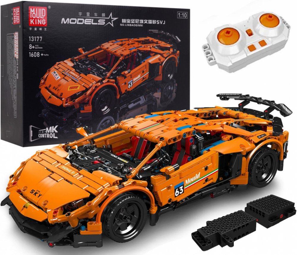 Se stavebnicí Mould King s 1608 kusů sestavíte oranžové sportovní auto s funkcí dálkového ovládání. Model je vyroben v měřítku 1:12 a je určen pro děti od 8 let. Auto má pohyblivé části, jako otevírací dveře, kapotu a zvedací spoiler. Ovládá se pomocí dálkového ovladače RC nebo mobilní aplikace. Model je vybaven elektrickým motorem MK8 Pro Series, 4x pohonem a nezávislými tlumiči. Součástí balení ...
