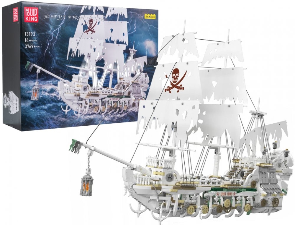 Postavte si impozantní pirátskou loď s tajemnou aurou – detailní model z 3769 dílků pro nadšence od 14 let. Stavebnice nabízí precizně zpracované detaily jako stožáry, plachty, děla a palubu. Díky pevné a odolné konstrukci je ideální do sbírky i jako dárkový set pro milovníky stavebnic a pirátských témat.Vytvořte si vlastní legendární plavidlo – pirátskou loď Duch, která okouzlí propracovanými prvky a působivou velikostí. Model zaujme tmavým, majestátním vzhledem a množstvím realistických detailů, jež zvýrazní atmosféru pirátského světa.Díky 3769 pečlivě vyrobeným dílkům z kvalitního plastu si užijete dlouhé hodiny stavění. Hotový model je skvělou dekorací i sběratelským kouskem pro dospívající i dospělé fanoušky stavebnic.Proč si ji zamilujete:Realistické detaily: stožáry, plachty, děla a členitá paluba.Pevná konstrukce: odolné dílky a stabilní sestavení.Velkorysé rozměry modelu: cca 93,4 × 28,2 × 62,7 cm.Skvělý dárek: ideální pro kreativní stavitele od 14 let.SpecifikaceVěk14+Počet dílků3769MateriálPlastKonstrukcePevná a odolnáDetaily modeluStožáry, plachty, děla, palubaRozměry modelucca 93,4 × 28,2 × 62,7 cmRozměry balenícca 44 × 33,5 × 15 cmObsah baleníStavebnice (3769 dílků), obrázkový návod, dekorativní samolepky
