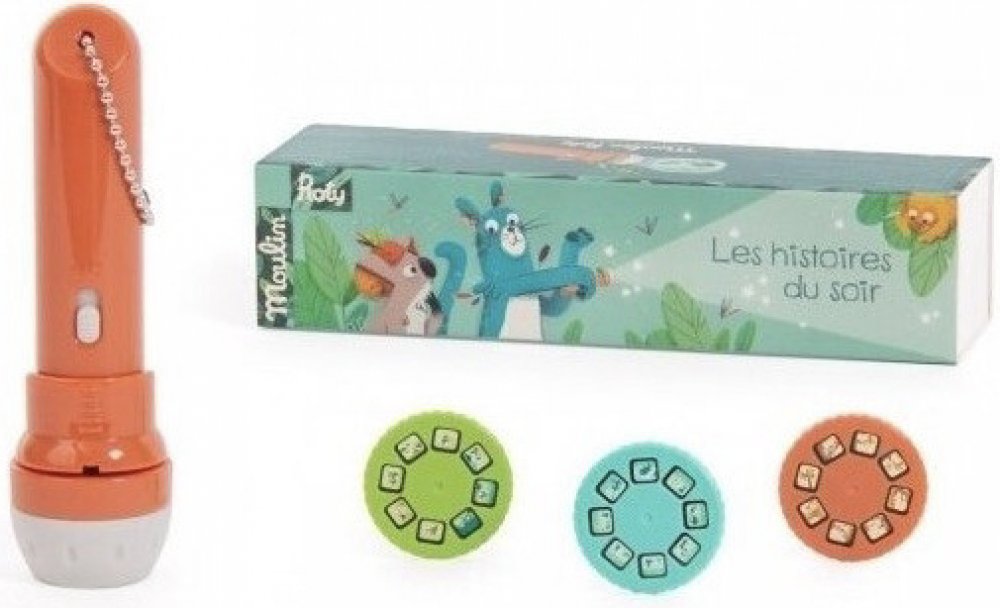 Promítací baterka Moulin Roty s motivem džungle přináší dětem kouzelný zážitek před spaním. Stačí vložit jeden z kotoučků do baterky, promítat obrázky na zeď nebo strop a společně se vydáte na výpravu do tropického světa plného zvířat a příběhů. Jednoduché ovládání zvládnou i děti a každý večer může být jiný, plný nových dobrodružství.