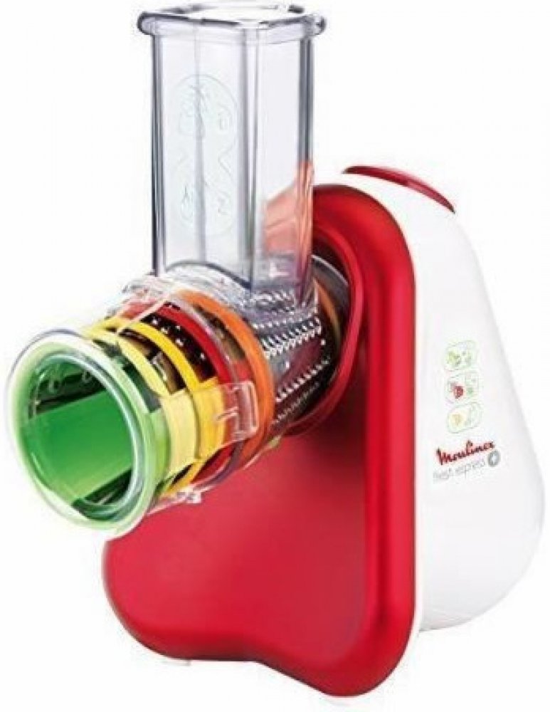 Elektrické struhadlo MOULINEX DJ756G15 FRESH EXPRESS+. funkce strouhání a krájení 5 bubínkových nástavců pro 5 funkcí: nástavec na strouhání brambor (pro přípravu bramboráků) hrubé strouhání jemné strouhání krájení na tenké plátky strouhání sýru široký plnící otvor ergonomický tvar, suroviny padají přímo do misky příkon 150W prostor pro uložení přívodní šňůry jednoduché čištění metalicky červený povrch