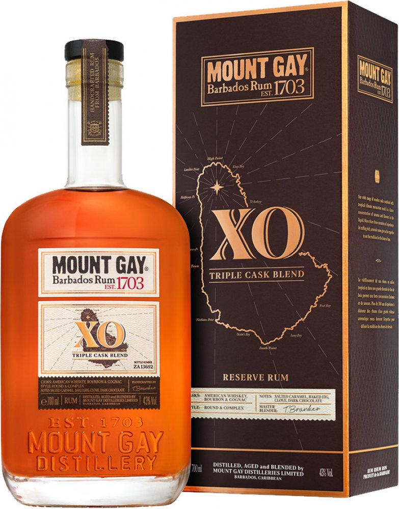 Mount Gay Extra Old pochází z Barbadosu a je opulentním blendem nejkvalitnějších destilátů stařených 8–15 let, smíchaný z rumů vyrobených převážně metodou pot still, což mu dodává větší jemnost a harmonickou chuť. Ta je bohatá s tóny sladkých mandlí, marcipánu, vanilky a zralých banánů. Závěr je dlouhý, jemný a harmonický.