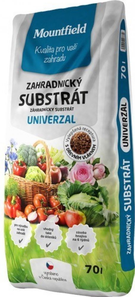 Univerzální substrát je vyroben z vybraných druhů rašelin, dřevního vlákna a vyzrálého kompostu, s upravenou reakcí a obohacený živinami.