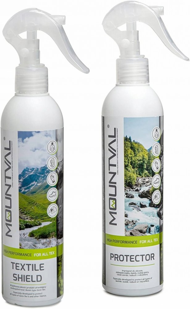 Mountval Textile Shield a Mountval Protector byly navrženy tak, aby obnovily voděodolnost vašeho oblečení a trekových bot. Oba spreje poskytují maximální ochranu bez snížení propustnosti vzduchu materiálů.