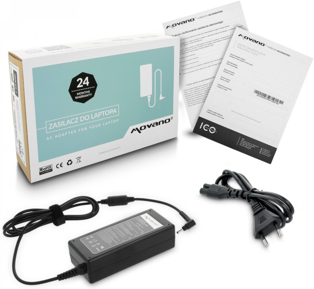 Nový, náhradní adaptér značky Movano s certifikátem kvality CE, ROHS určený pro notebooky Acer.