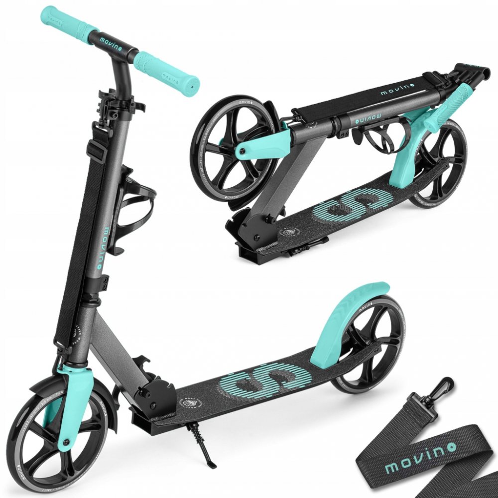 Transportní popruh a drážkování rukojetí Koloběžka Movino Infinity má pohodlný přepravní popruh, který bude užitečný každý den i na cestách. Pevný úchop je základem pohodlí a bezpečnosti. Movino Infinity má pohodlné, drážkované rukojeti, které zajišťují odpovídající uchopení. Držák na láhev Díky praktickému držadlu budete mít láhev s vodou vždy po ruce. Toto praktické příslušenství bude užitečné pro každého, kdo tráví spoustu času na koloběžce. Parametry