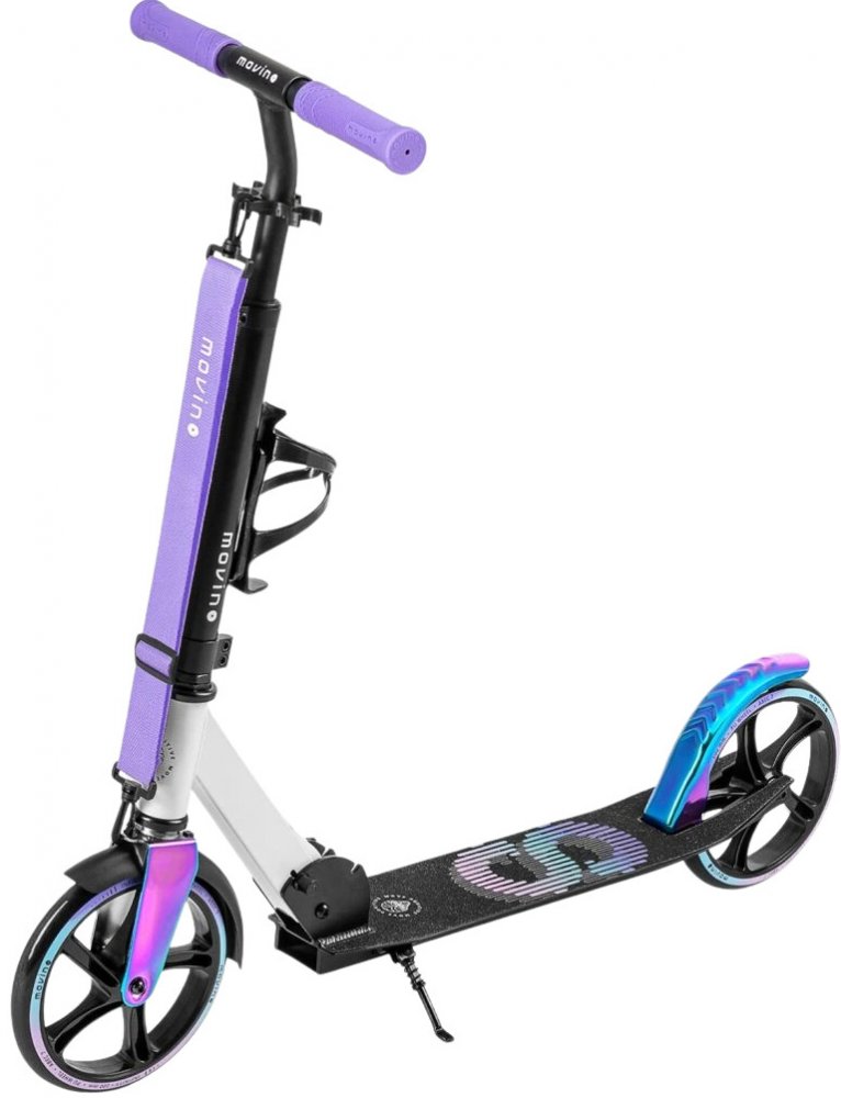 Movino Infinity je pohodlná městská koloběžka pro děti a mládež, která je oblíbená především na cesty do školy. Má nízko zavěšenou desku, kterou ocení mladší uživatelé. Model Infinity byl vybaven praktickým příslušenstvím: přepravním popruhem a držákem na láhev.