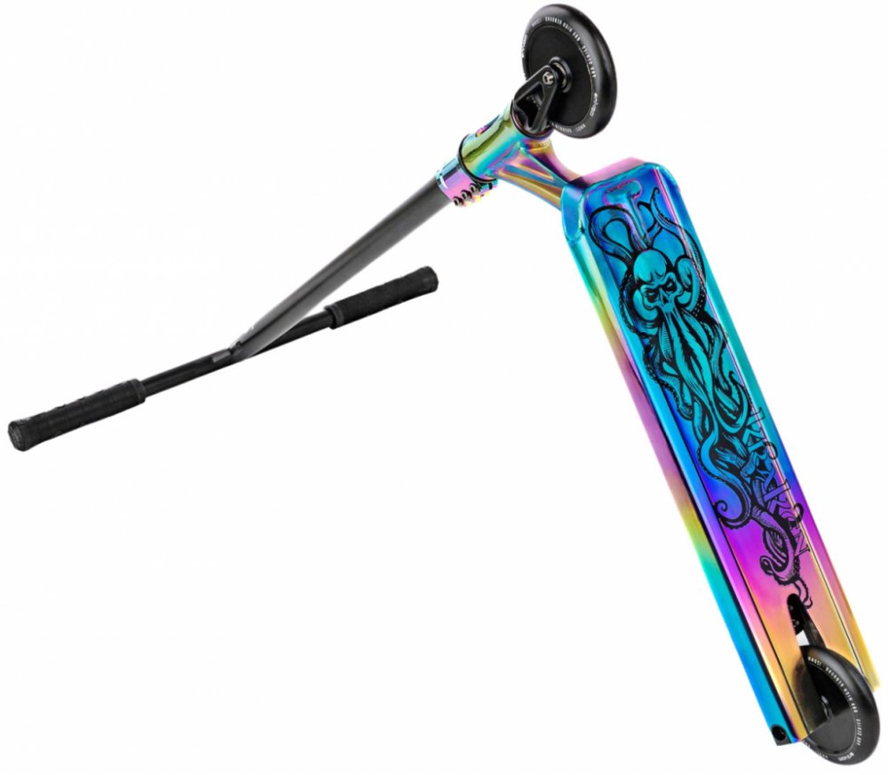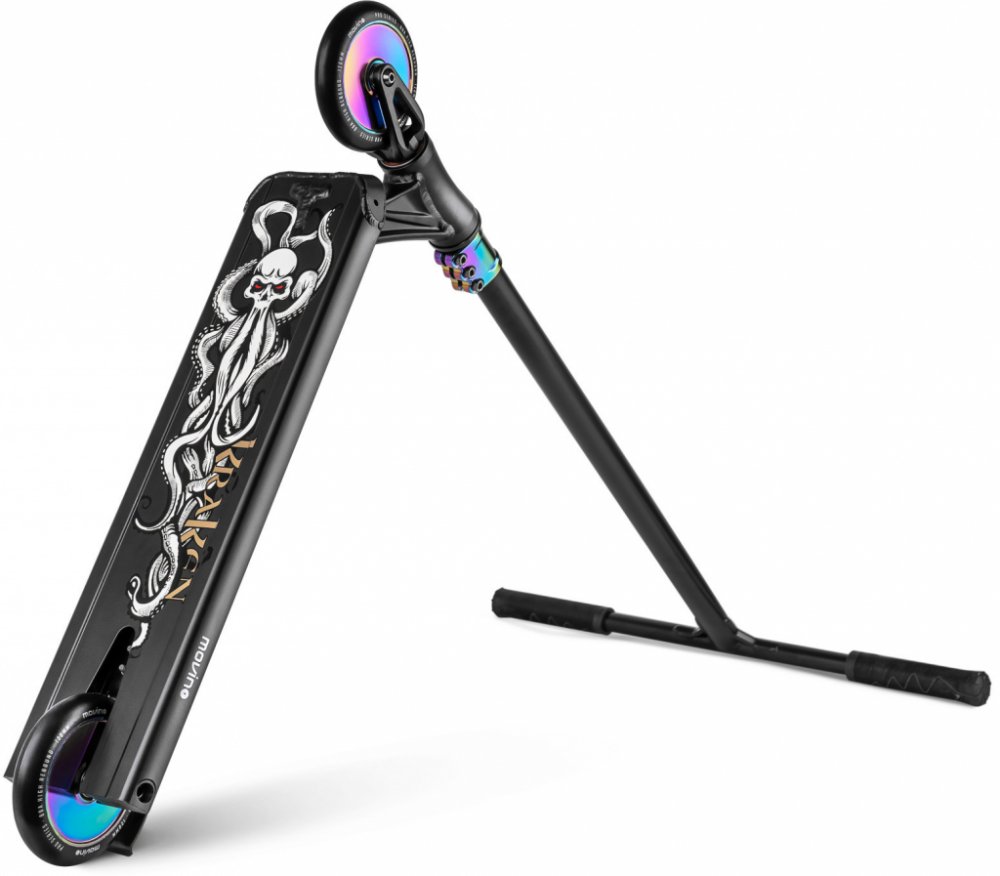 Perfektní triky, stylové skoky a parádní jízda - pro freestyle koloběžku Movino lehké jak facka. Hned pro začátek je dobrou zprávou její přizpůsobení pro děti, vaše ratolesti tak perfektně dosáhnout jak na řídítka, tak i například na brzdy. Maximální hmotnost jezdce by měla být 100 kg. Rám freestyle koloběžky Movino Kräken Neochrome velice lehkého hliníku, přičemž její celková hmotnost dosahuje 3,...
