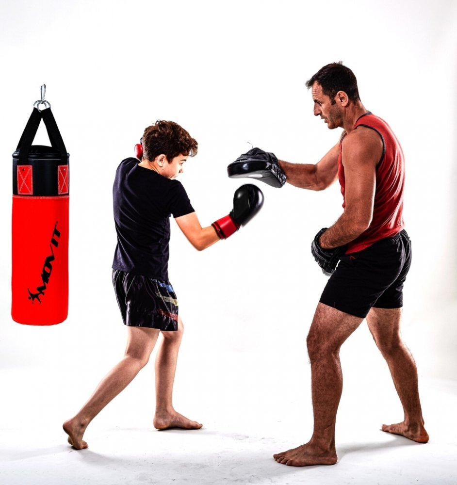 Bezpečné a praktické, odolný nylonový závěsný pás s kroužky a karabinou, prostorná tréninková taška pro uložení. Boxerské rukavice mají fixaci palce, jsou polstrované pěnou a vybavené otvory pro vzduch a suchým zipem.Technické údaje:materiál: PVCbarva: červená/černározměry: 60 x 20 cm (v x š)boxerské rukavice: z polyuretanu o síle 8 ozbandáže: ze 100% bavlny pro větší ochranuboxerské rukavice: obvod ruky bez palce 16 - 18 cmObsah balení:1 x boxovací pytel1 x boxerské rukavice1 x boxerské bandáže1 x taška na přenášení Popis článku Technické údaje: MOVIT boxovací set 5,5 kg pro děti a mládež, výběr barev: Boxerské rukavice 8 oz (obvod ruky bez palce 16-18 cm), boxerské bandáže a přepravní taškaBezpečné a praktické: odolný nylonový závěsný popruh s kroužky a karabinou, prostorná tréninková taška pro skladováníBoxerské rukavice 8 oz: mají fixaci palce, jsou polstrované pěnou a vybavené vzduchovými otvory a suchým zipemTechnické údaje: Boxerský pytel je vybaven boxerskou soupravou, která je součástí balení : Boxerské rukavice 8 oz z polyuretanu, 100% bavlněné bandáže pro dodatečnou ochranu Rozsah dodávky: boxovací sada MOVIT obsahuje boxovací pytel, boxovací rukavice, boxovací bandáže a přepravní tašku