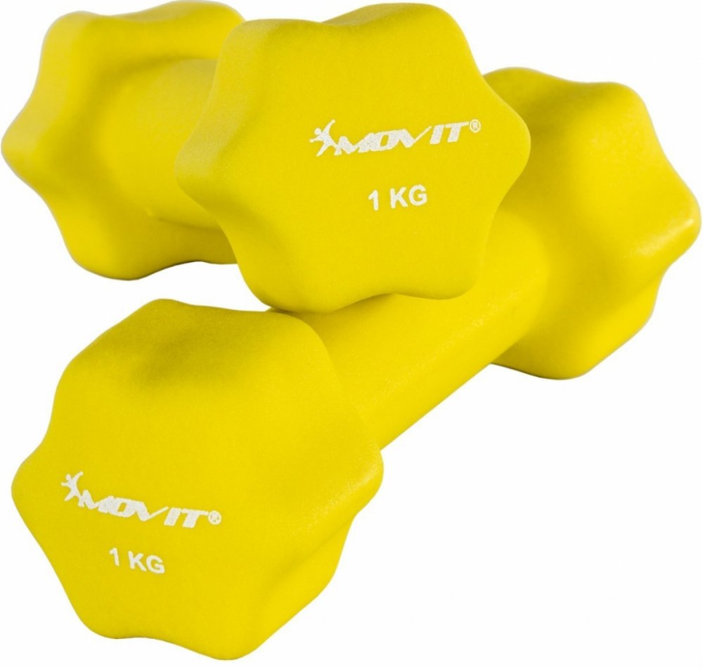 Šestihranné jednoruční činky značky MOVIT® o hmotnosti 1 kg. Součástí balení je pár těchto činek. Činky mají ocelové jádro s neoprenovým povrchem - jsou odolné proti prokluzování ve spocené ruce, snadno uchopitelné a při položení na zem se Vám nebudou kutálet po podlaze.