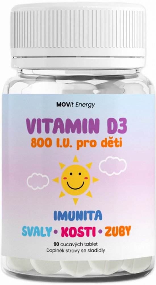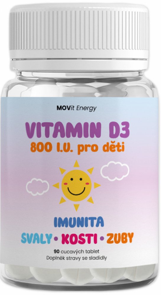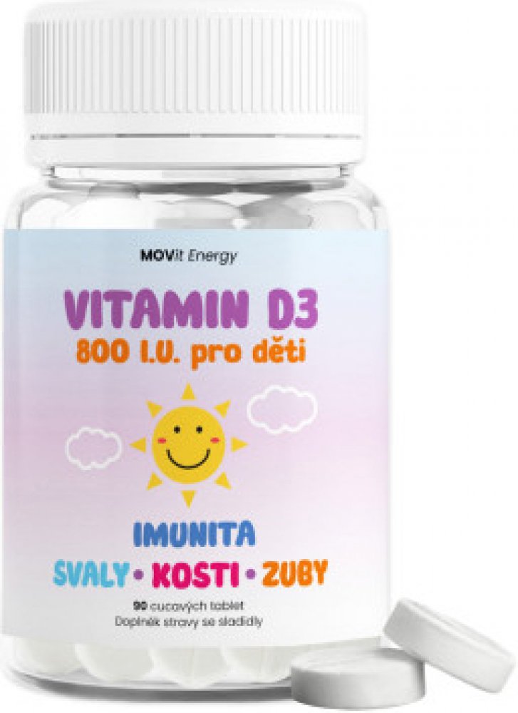 Movit Energy 90 tbl tablety imunita unisex 25.65 g Movit Energy pro děti a dospívající perorální od 3 let Pomeranč Česká republika vitamín D3 imunita a obecné zdraví 90 800.0 IU Kdykoliv 1 za den Suché místo + pokojová teplota