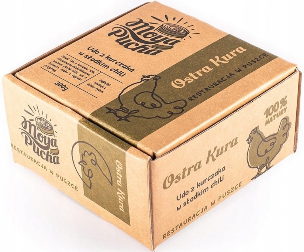 Ostrá slepice je řemeslná konzerva, vyrobená ze 100% přírodních surovin, přímo pod nosem, v Polsku. Jeho součástí je vyluhované kuřecí stehno, připravené z aromatického kokosového mléka a otřepaně pikantního chilli.