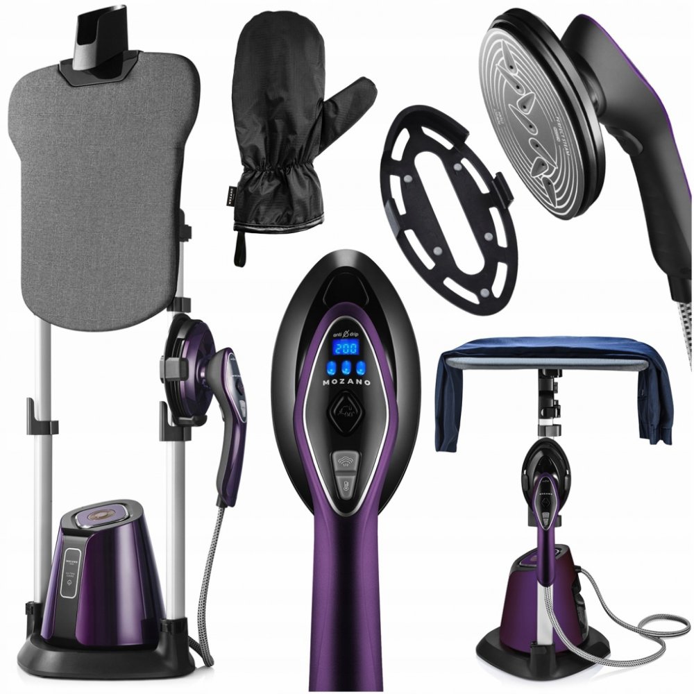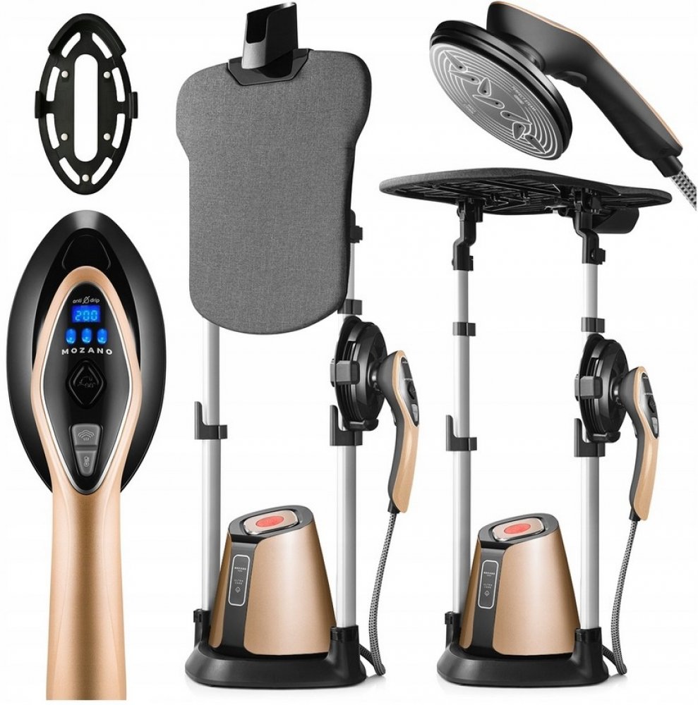 NAPAŘOVAČ ODĚVŮ PARNÍ STEAMER ŽEHLIČKA NA OBLEČENÍ PRKÉNKO MOZANO 2500W 3v1 Vysoký výkon 2500W | 3 úrovně parního výkonu | Regulace teploty | Rychlé předehřívání | Otočná hlava | Nádržka na vodu 1200 ml | Keramická žehlicí plocha | Vertikální i horizontální žehleníHlavní vlastnosti napařovače Mozano Ultra Care:
