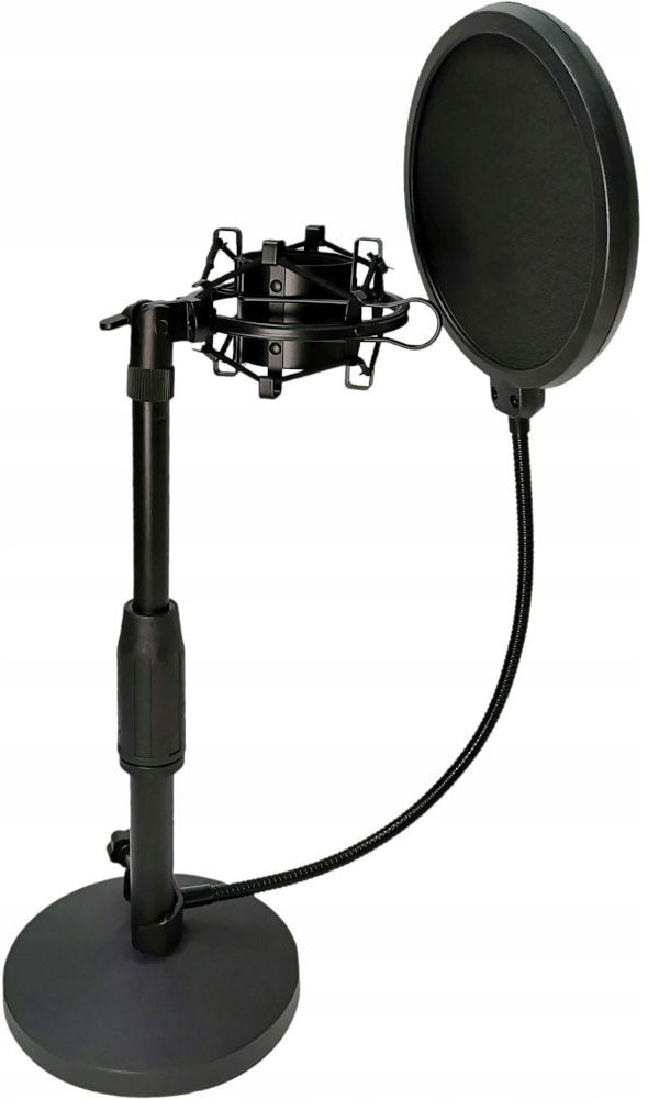 Stolní mikrofonní stojan s robustní základnou, odpruženým držákem a vysoce účinným Pop filtrem. Tato sestava je vhodná pro tvůrce podcastů, broadcastů, youtubery a hudební producenty. Stojan disponuje teleskopickou tyčí, odpružený držák potom pojme studiové mikrofony s průměrem těla od 43 do 47 mm. Pop filtr vám zase zajistí eliminaci rušivých zvukových faktorů a plosivních souhlásek. Tato sada by neměla rozhodně chybět ve výbavě žádné kreativní duše, která chce zaznamenat své nápady v co nejlepší kvalitě a pozvednout tak svojí tvorbu na další level.
