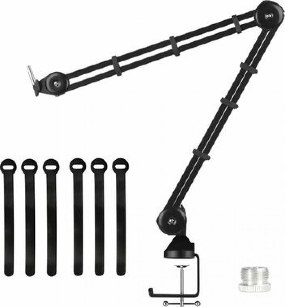 Prémiový stolní mikrofonní stojan vhodný pro živé rádiové vysílání, nahrávání dabingu, nebo tvorbu originálních videí na váš Youtube kanál. Na mikrofonní držák umístíte všechny typy mikrofonů, robustní kovové rameno unese váhu až 1,2 kg, navíc s ním lze bez problému otáčet o 360°. Lehká a odolná konstrukce vám umožní snadné uskladnění či přemístění stojanu na jakékoli místo ve vašem domácím studiu. Díky protiskluzové svorce můžete umístit držák na stůl o tloušťce až 60 mm s hladkým nebo lesklým povrchem. Součástí balení je závitová redukce a šest Velcro pásků pro dokonalý kabelový management.