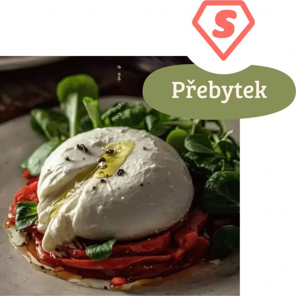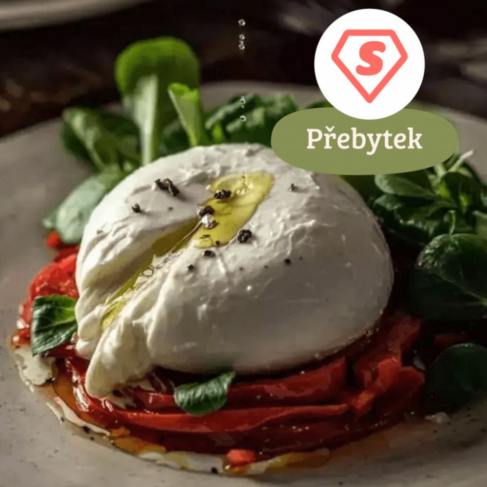 **Burrata** je sýr, který je původem z Puglie a v překladu znamená „máslová".