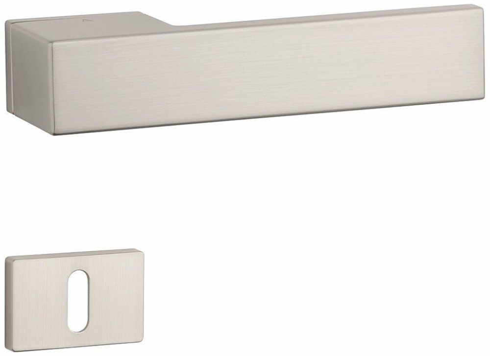 Rozetová klika na interiérové dveře s obdélníkovou rozetou je vyrobena z materiálů vysoké kvality - zamak a je povrchově upravena. Rozeta má rozměr 52 x 33 mm a tloušťku jen 7 mm. Minimalistický design rozety s vysokou stabilitou kliky na dveřích působí jemně, a tím ponechává prostor pro vyniknutí designu samotné kliky.