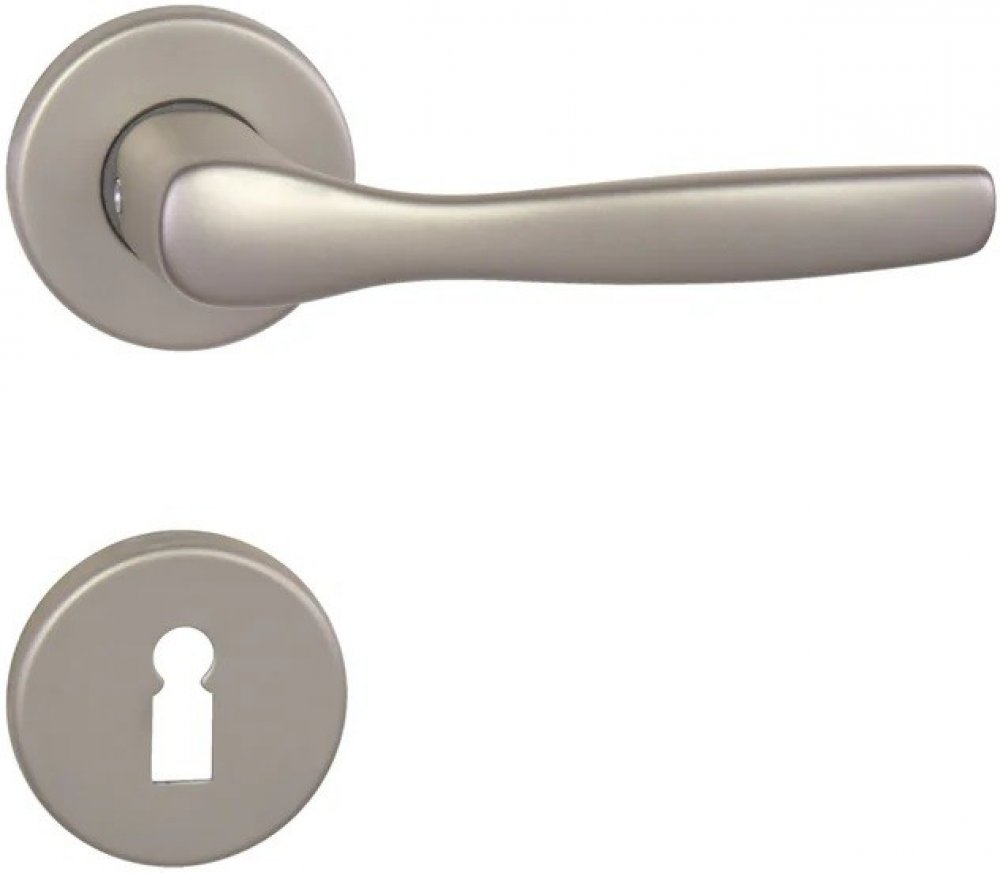 Rozetová klika na interiérové dveře s kulatou rozetou je vyrobena z hliníku a je povrchově upravena.