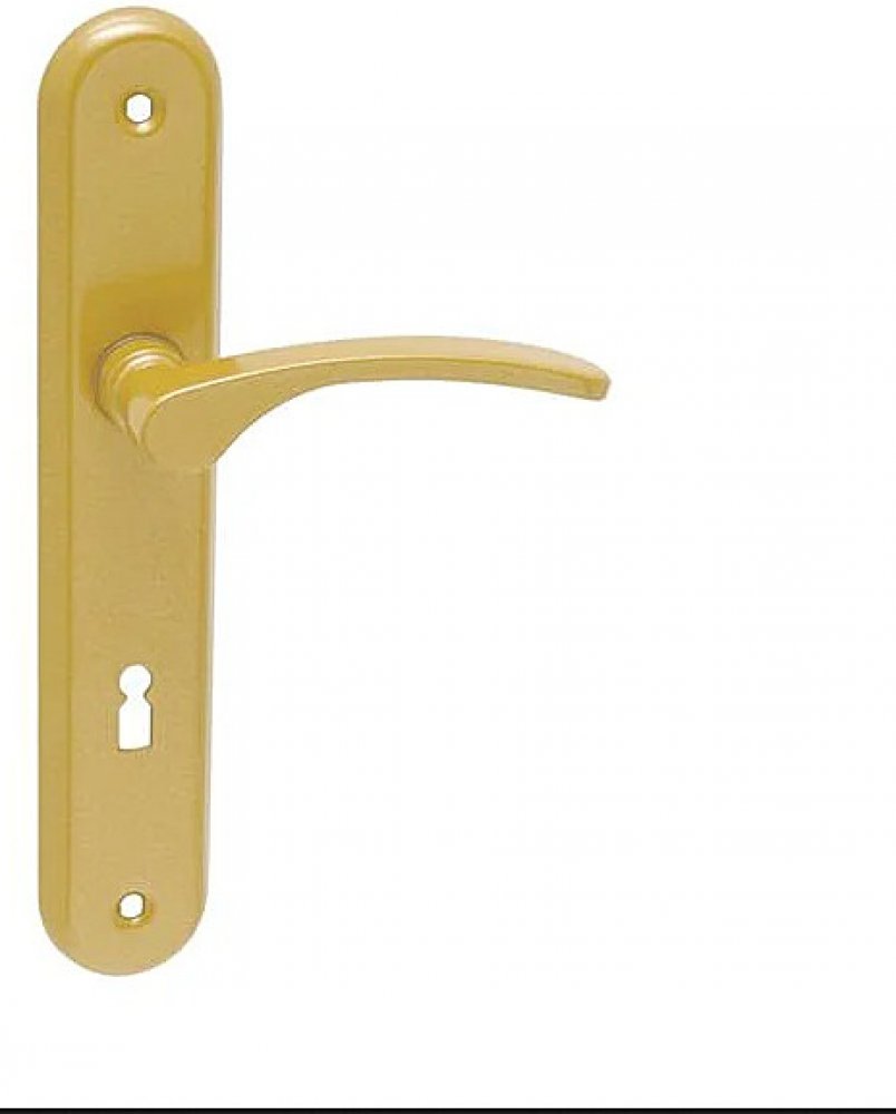 Štítová klika na interiérové dveře s oválným štítem je vyrobena z hliníku a je povrchově upravena. Oválný štít má rozměry 42 mm x 230 mm a klika neobsahuje vratný mechanismus.