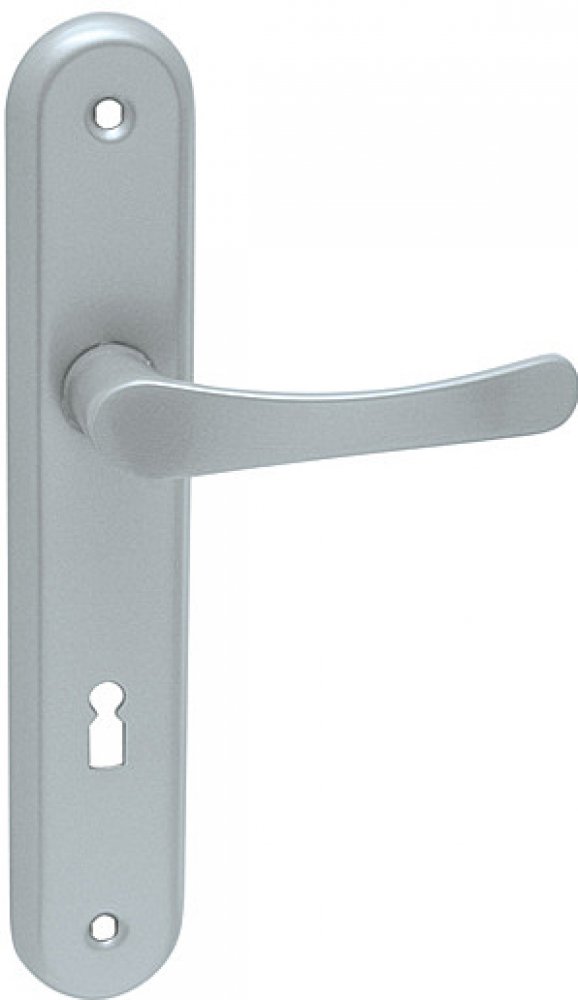 Štítová klika na interiérové dveře s oválným štítem je vyrobena z hliníku a je povrchově upravena. Oválný štít má rozměry 42 mm x 230 mm a klika neobsahuje vratný mechanismus.