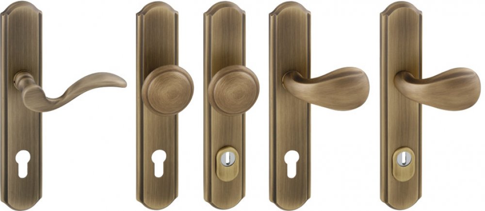 Štítová klika na vchodové a bezpečnostní dveře se zpevněným rustikálním štítem