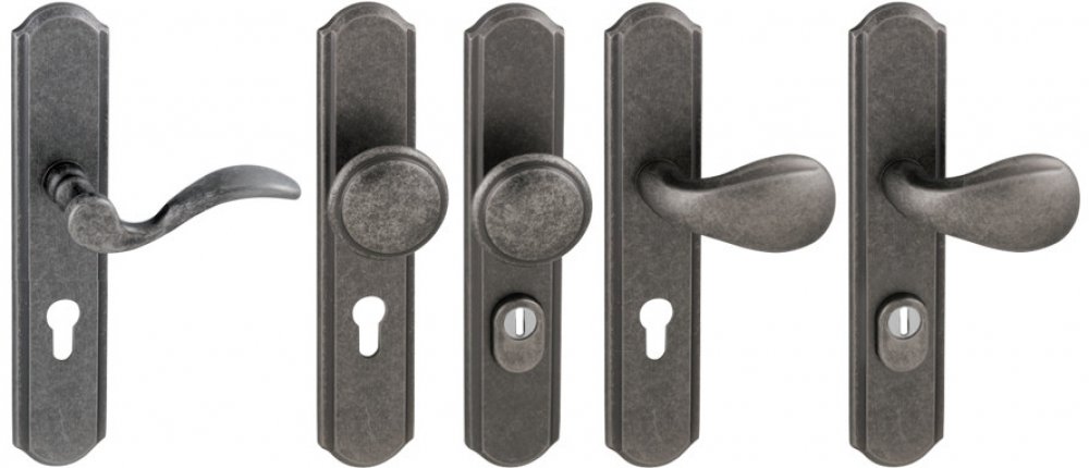 Štítová klika na vchodové a bezpečnostní dveře se zpevněným rustikálním štítem